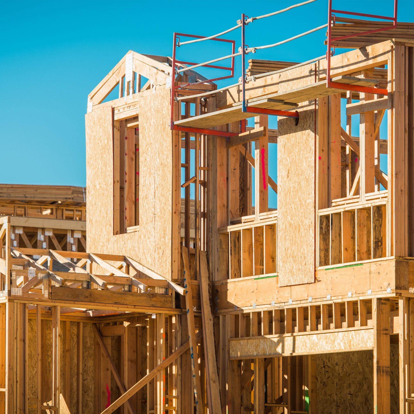 Structural framing for single-family homes, townhouses, additions, and custom residential projects using high-quality wood framing systems.